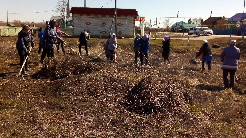 Работники исполкома, сельского дома культуры, социальные работники и другой актив села вышли на уборку территории.