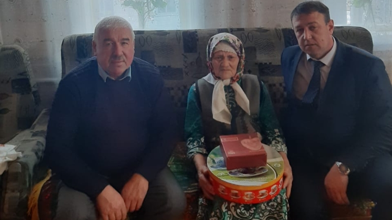 Заведующий РОНО Дрожжановского муниципального района Халитов И.А. и Глава СП Халитов Г.Ш. посетили ветерана Гайнуллову Замилю.