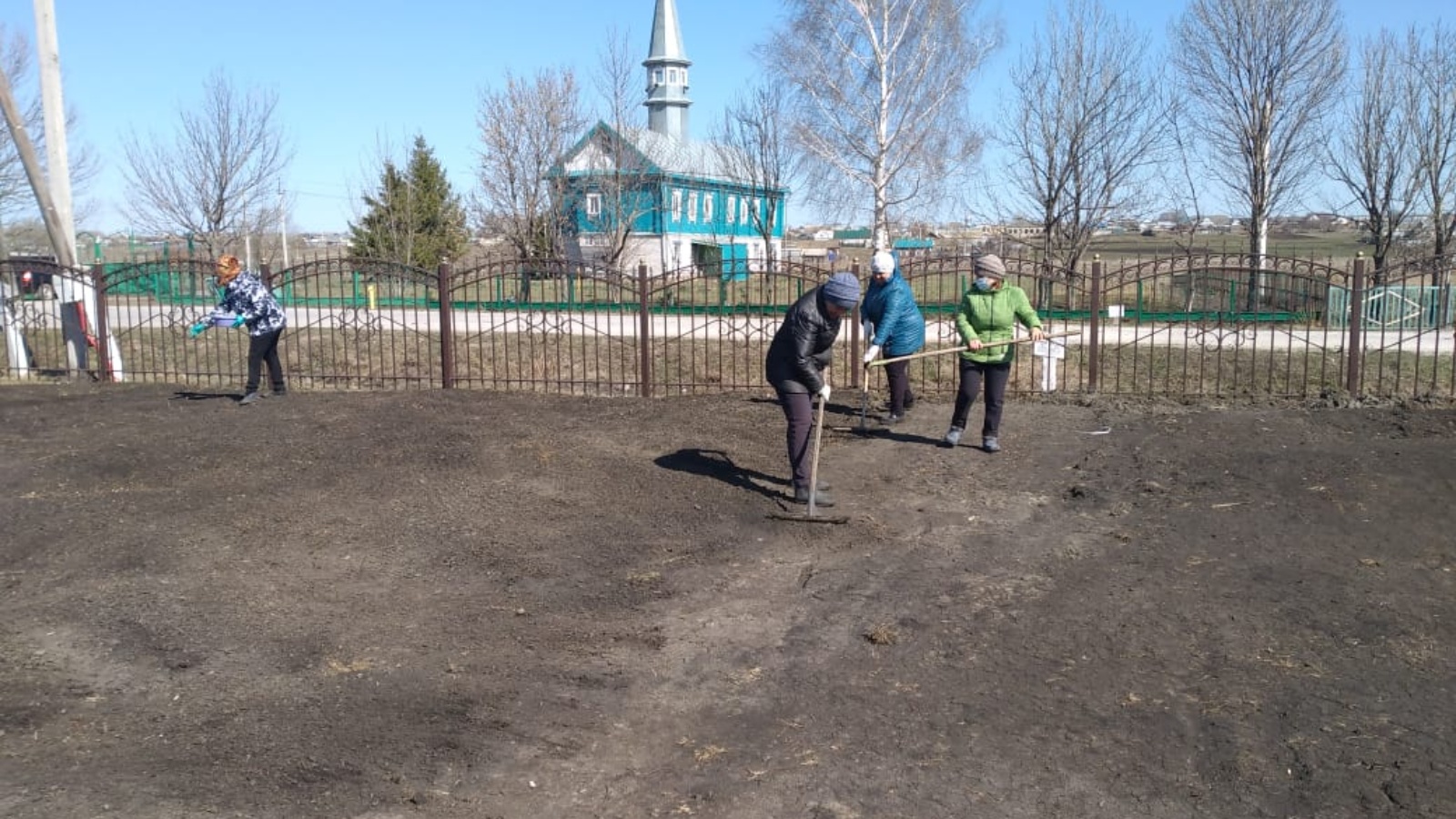 Сегодня работники исполнительного комитета, школы, бибилиотеки, клуба, социальные работники вышли на средник-субботник. Высевают газонную траву в парке Победы..
