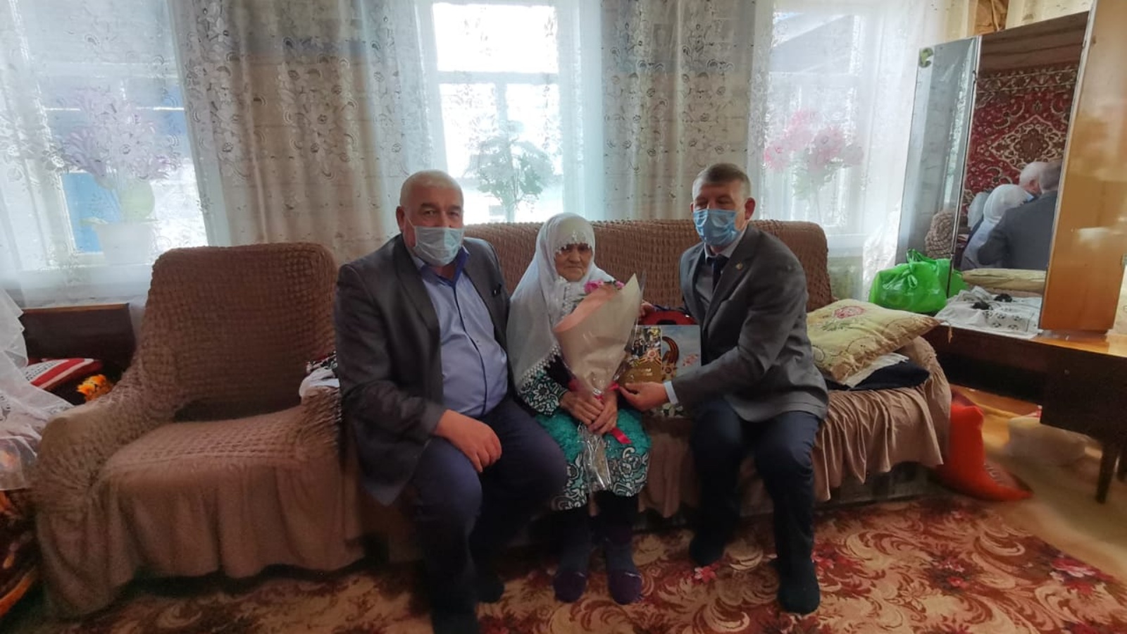 Заместитель Главы района и глава сельского поселения поздравили ветеранов с Днем Победы.