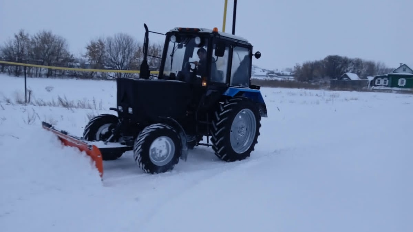 Трактор Исполнительного комитета, полученный на грант, каждый день очищает дороги внутри села от снега.