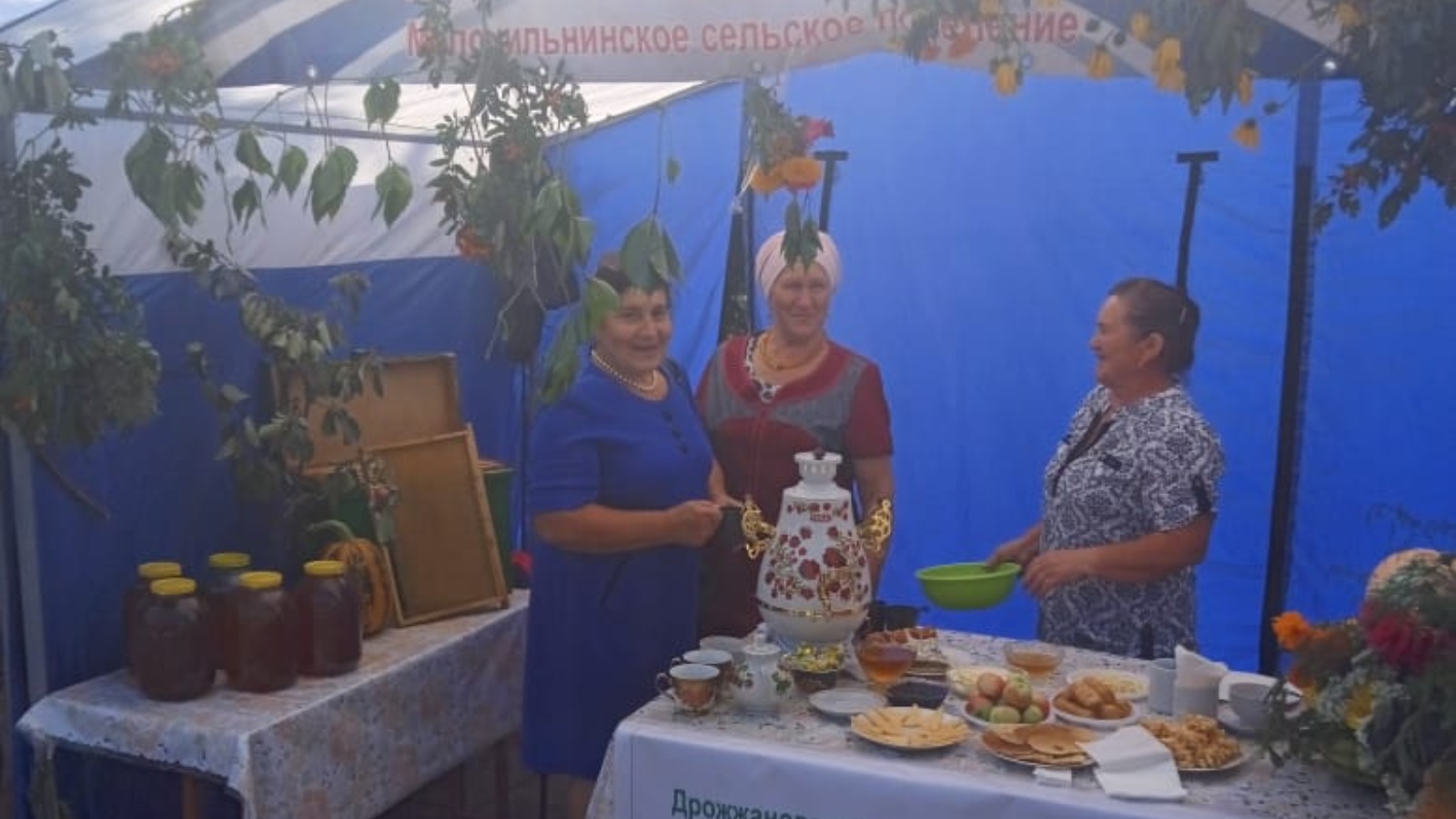 Жительница села Малая Цильна Губайдуллина Фаридя участница медовой ярмарки. Работники Малоцильнинский СОШ пекли блины, готовили праздничный стол - чаепитие.