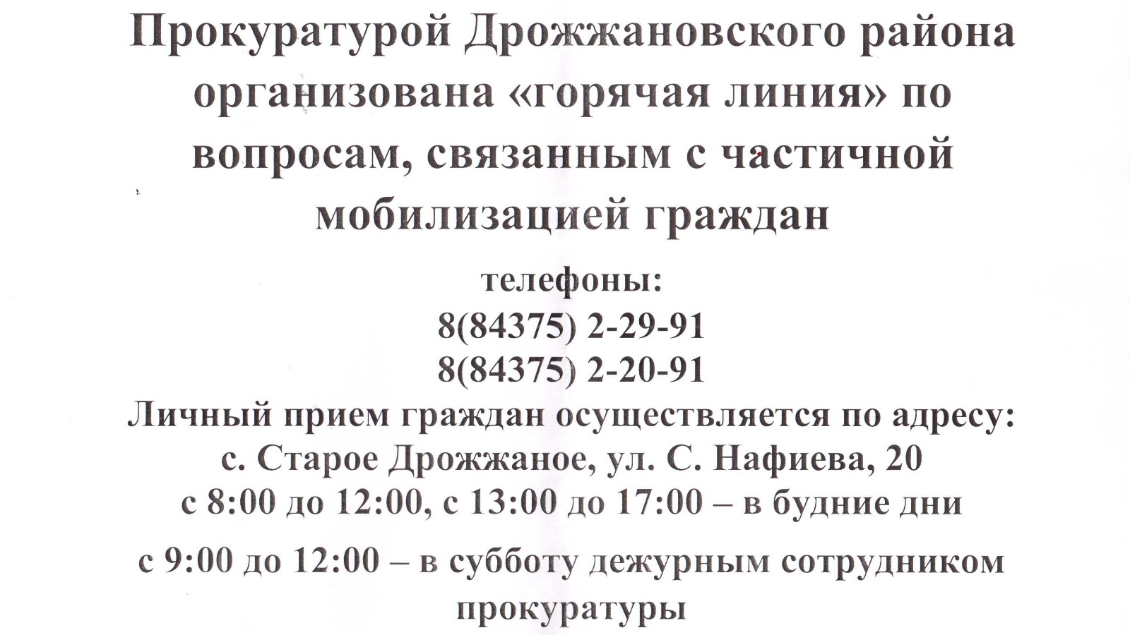 "Горячая линия" по вопросам, связанных с частичной мобилизацией