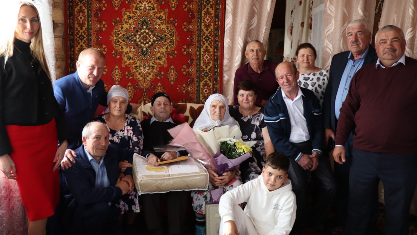 Поздравили юбиляров Глава района Гафаров М.Р., представитель из Казани, Глава сельского поселения Халитов Г.Ш., дети и другие близкие родственники, вручили подарки.