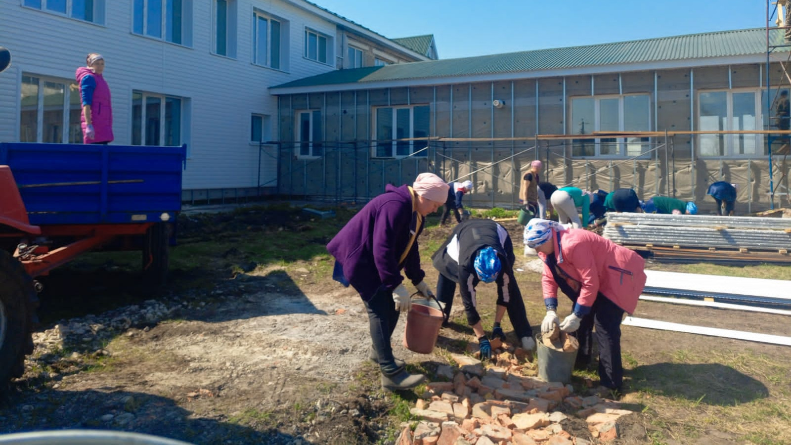 После капитального ремонта родители школьников работали в школе, собирали камни, остатки стройматериалов.