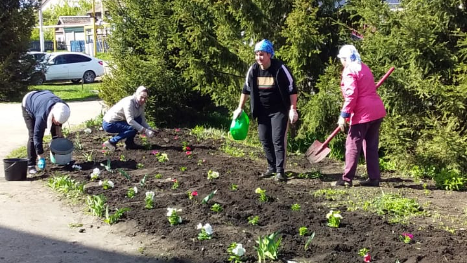 Работники Исполнительного комитета, СДК, библиотеки посадили цветочные рассады около здания СДК