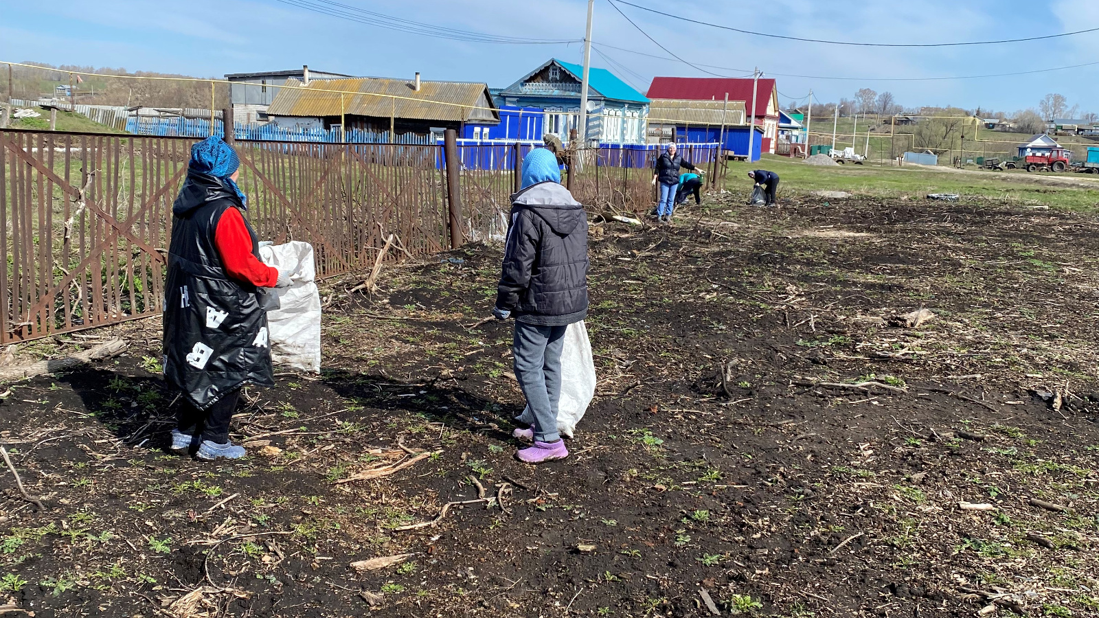 Сегодня весь актив села вышли на субботник - сбор мусора.